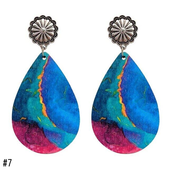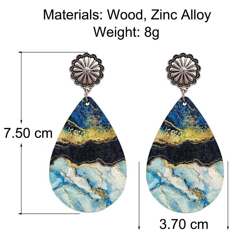 送料無料 カラフルな大理石のテクスチャプリント木製ティアドロップイヤリング女性 2023 ユニークなステートメントイヤリング木製ジュエリーギフト 指輪 AE33211008078023910765