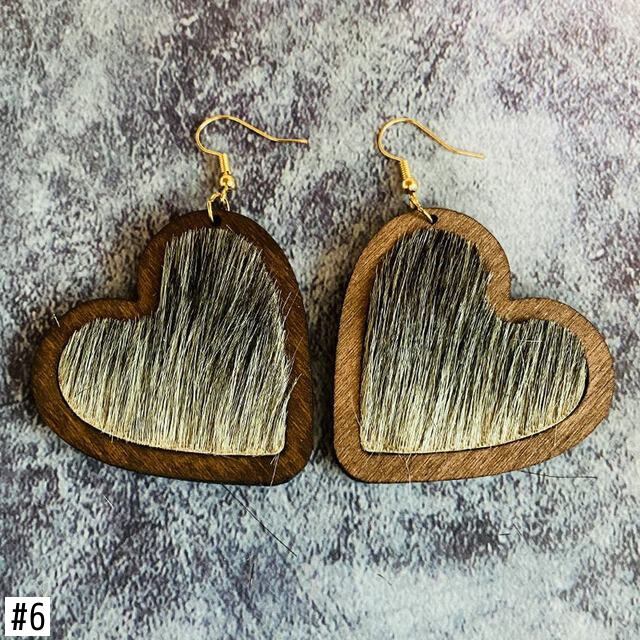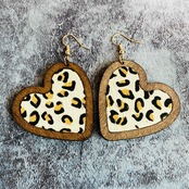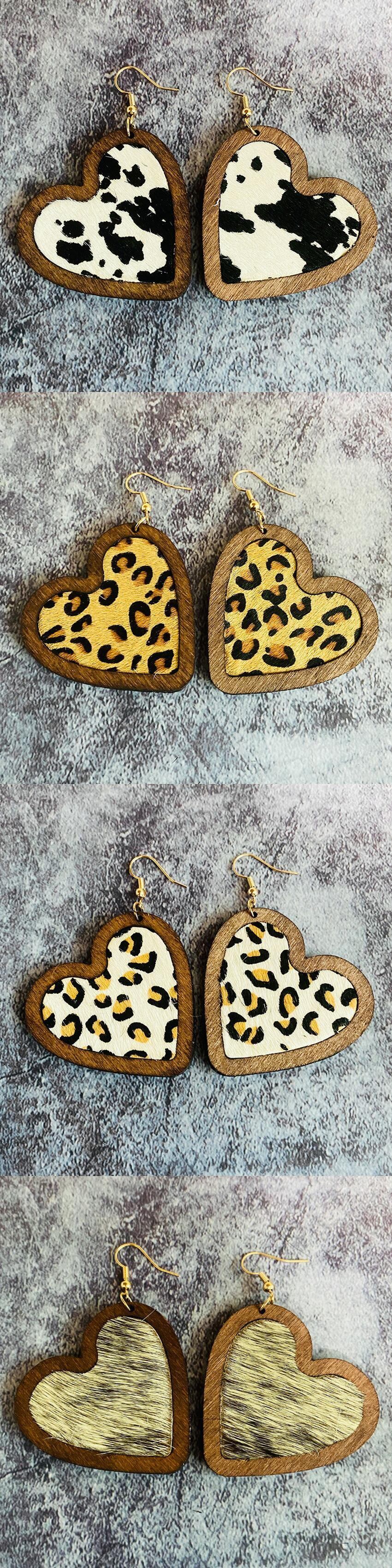 送料無料 動物ヒョウ柄本革インレイウッドハートイヤリング女性 2023 ブティックベゼルジュエリー レザー 指輪 天然 AE33211008057354822008