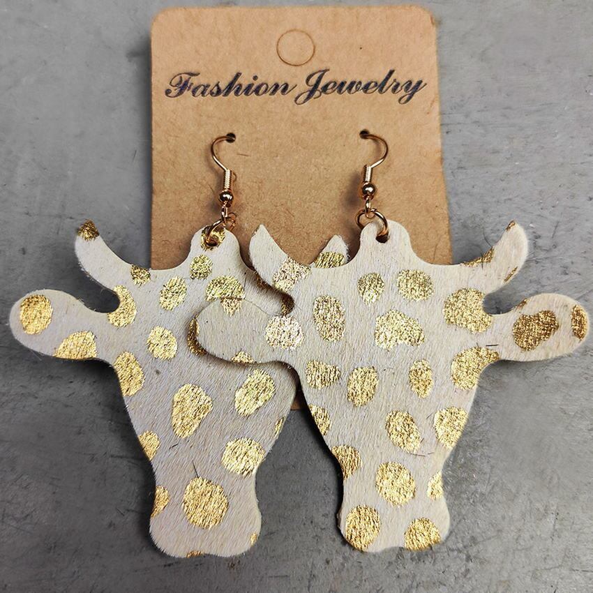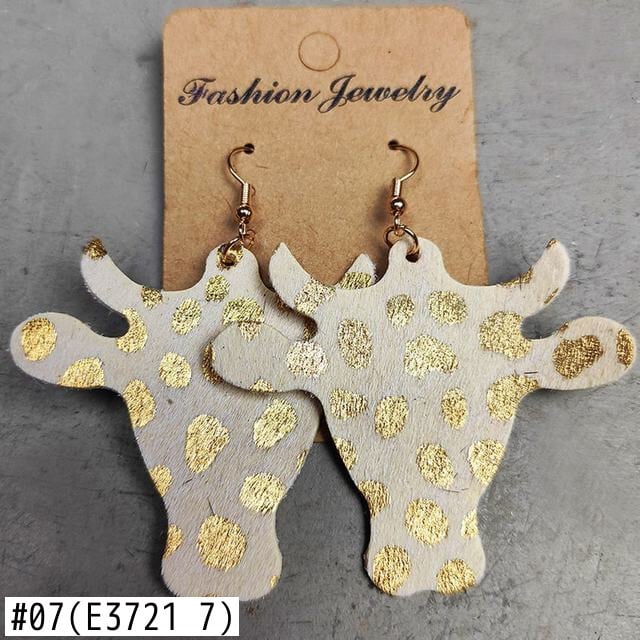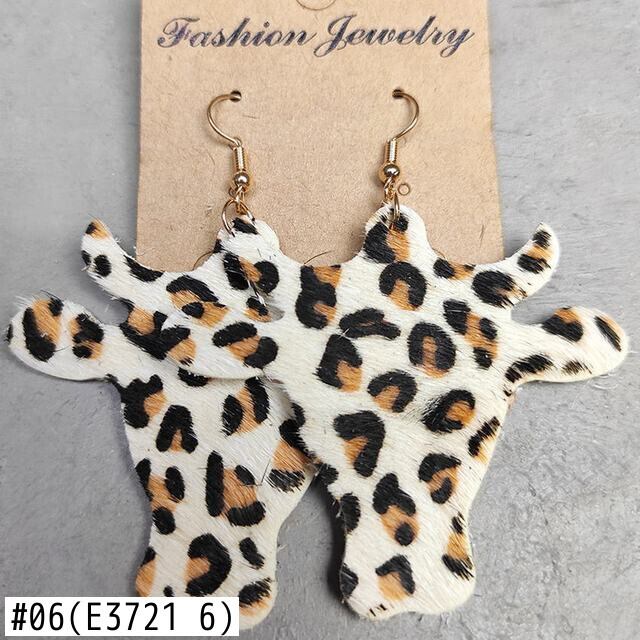 送料無料 素朴なアニマルプリント本革牛イヤリング女性牛西洋雄牛の頭の牛のイヤリングの宝石類のギフト レザー 指輪 天然 AE33211008046220212031
