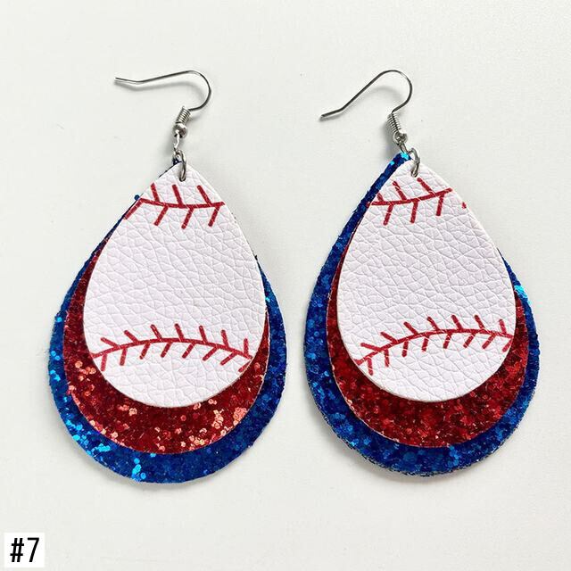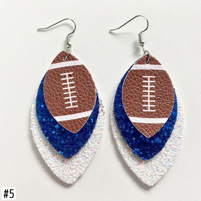 送料無料 レイヤーグリッターレザーラグビー野球ソフトボールイヤリング女性スポーツジュエリー 指輪 AE33211008083478348356