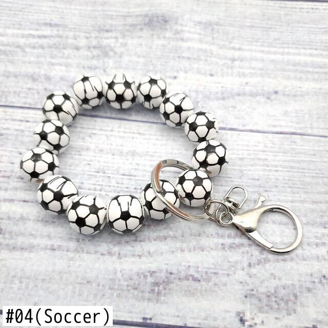 送料無料 1.60 センチメートルウッドビーズリストレットキーリング野球バレーボールサッカー Keychian ブレスレット女性スポーツキーチェーンビーズ腕輪伸縮性 指輪 AE33211008081534163782
