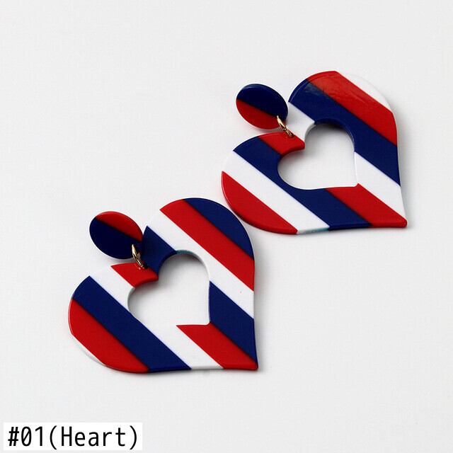 送料無料 レッド ブルー ホワイト ストライプ アセテート アクリル イヤリング 幾何学的な形状の独立記念日のイヤリング 愛国的なジュエリー 指輪 AE33211008062795124660