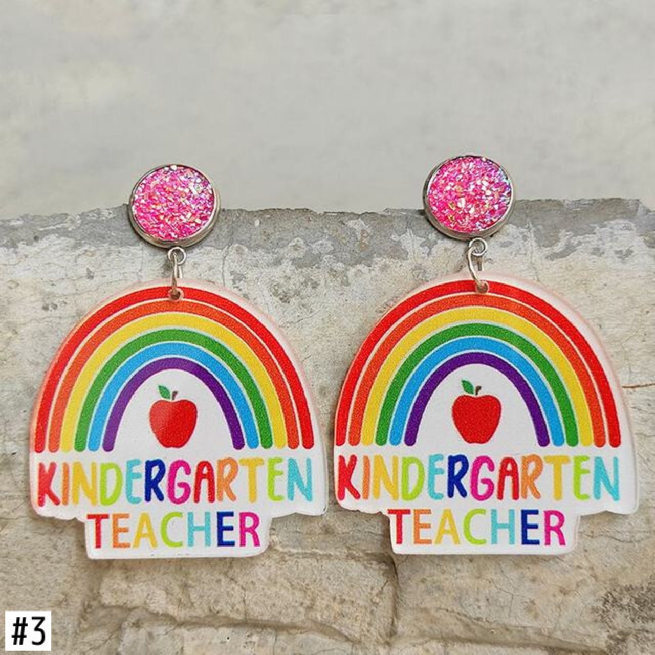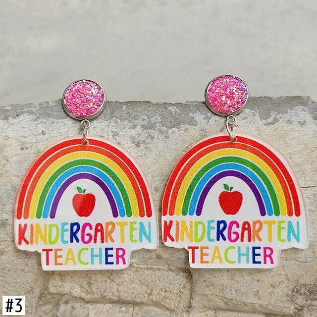 送料無料 レインボー アーチ型鉛筆 アップル アクリル 校長 幼稚園 教師 イヤリング スクール カウンセラー イヤリング ジュエリー 指輪 AE33211008062182636455