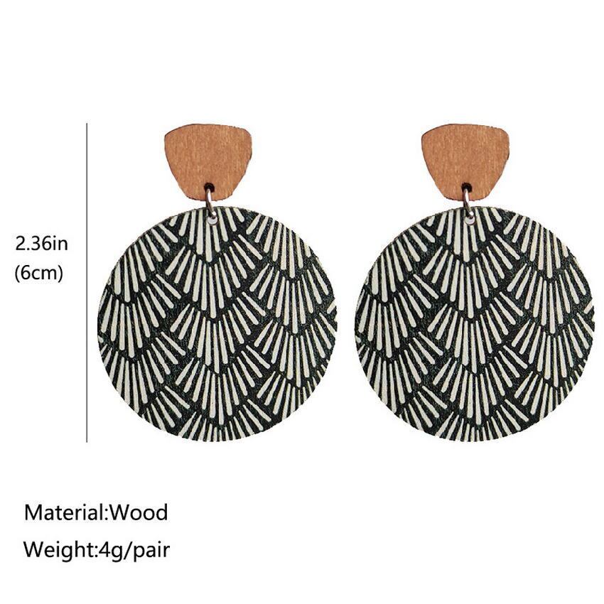 送料無料 大ラウンドウッドディスク夏花ステートメントイヤリング女性の花と葉のプリントウッドイヤリング サマー 夏物 花柄 指輪 フラワーデザイン AE33211008072186312845