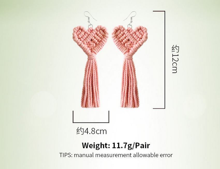 送料無料 ハートシェイプマクラメイヤリングコットンストリング編組ラブハートフリンジ電話イヤリング自由奔放に生きるジュエリー 指輪 AE3321100801057483893
