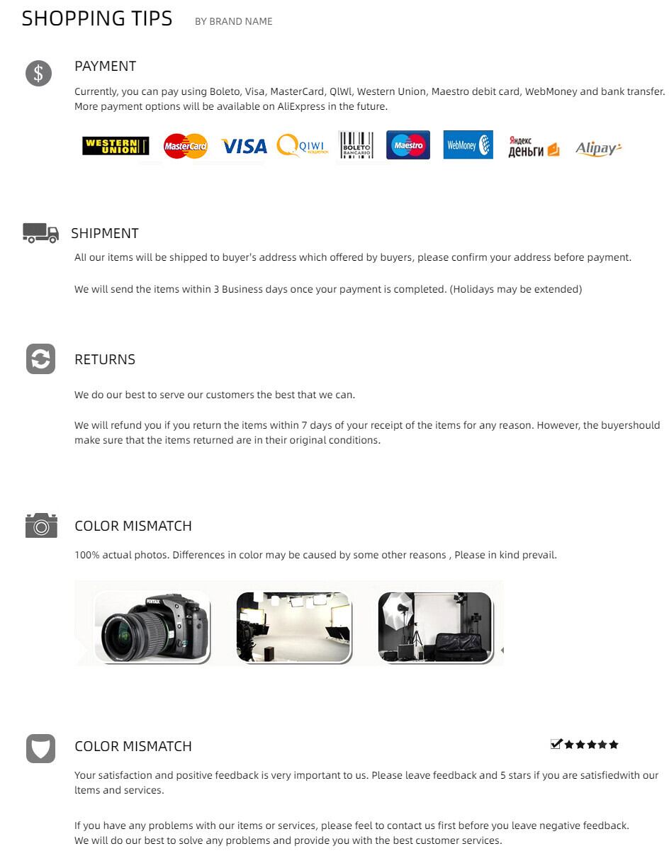 3)商品到着後に関して、サイズ変更、カラーやイメージが違う、実寸が違うなどのお客様都合での返品・交換は一切お受けしておりません。そのような方のご購入は予めご遠慮下さい。