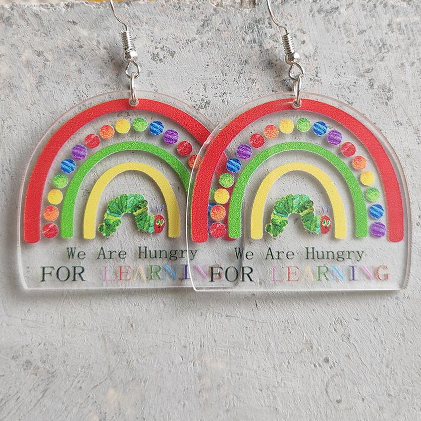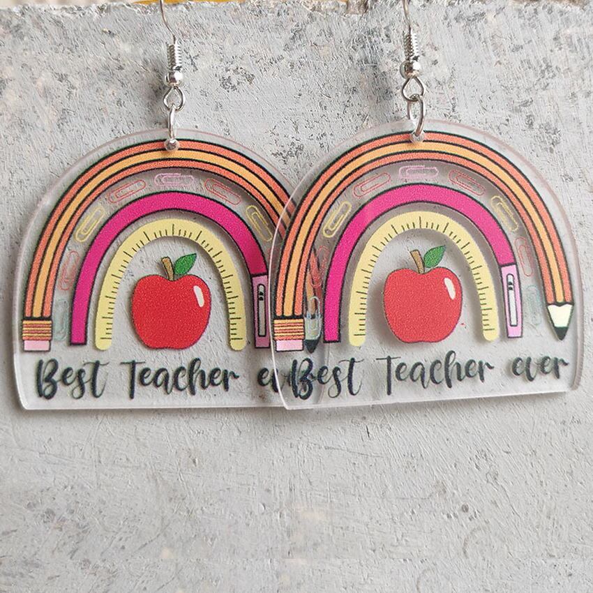 送料無料 ペンシル ハート ヒョウ アーチ アクリル レインボー イヤリング レディース ポジティブ ティーチャー ギフト ジュエリー 指輪 AE33211008015707999752