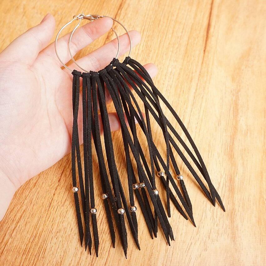 送料無料 銅線ロングベルベットスエード電話フープイヤリング 2021 トレンディボヘミアンジュエリー女性アクセサリー スウェード 指輪 AE33211008086226342252