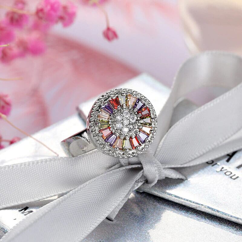 送料無料 SODROV 高級レインボージュエリーカラフルなクリスタルジルコンフラワーリング女性の結婚婚約指輪米国サイズ 6-10 フラワーデザイン AE00870034817374537