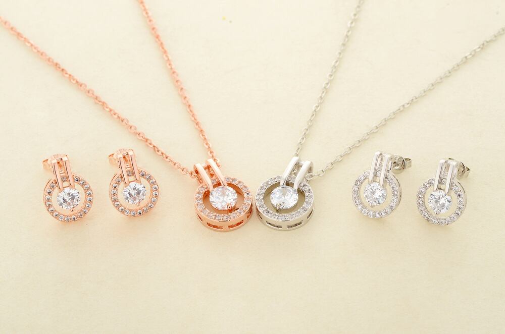 送料無料 フル ホワイト CZ スター ネックレス イヤリング セット シンプル ジルコン ジュエリー セット レース AE00870064039236342