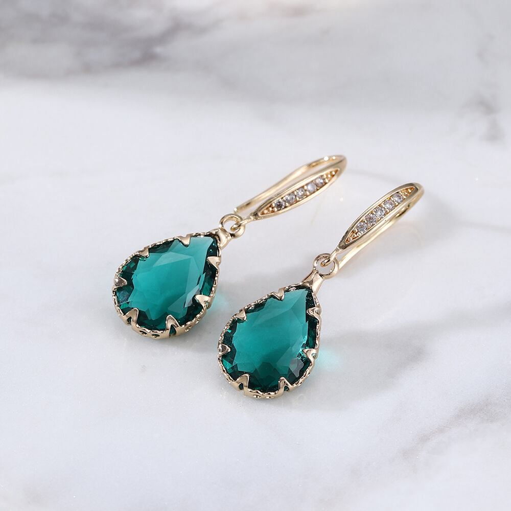 送料無料 SODROV ゴールドカラー ブリリアント フェアリー トルマリン クリスタル ジルコン イヤリング ジュエリー レディース 指輪 AE0087009990958771