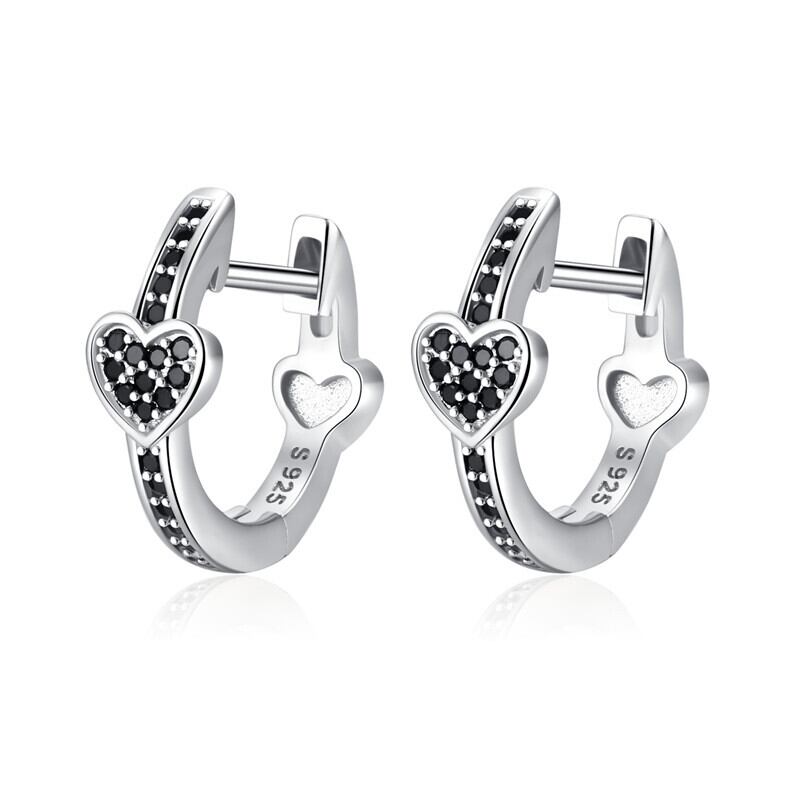 送料無料 SODROV ブラック ジルコン ハート フープ イヤリング ジュエリー クリック ゴシック レディース ブラック アクセサリー イヤリング レディース 指輪 AE00870048482960225