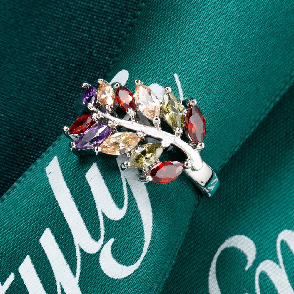 送料無料 葉の形混合色ジルコンハンドジュエリー結婚指輪女性作成クリスタルリング花嫁の結婚指輪の女性のギフト 人工 AE00870077619754437