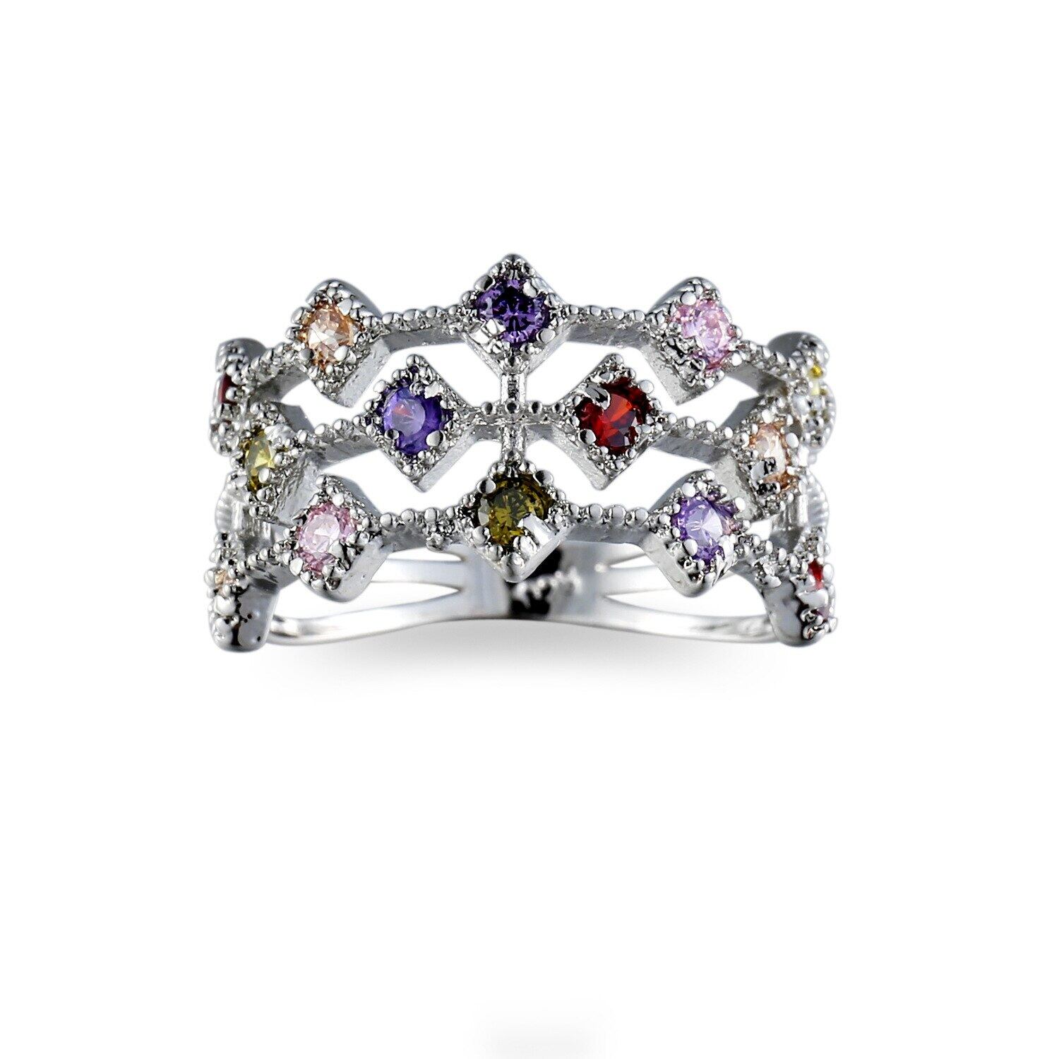 送料無料 カラフルなジルコン中空リングジュエリー女性キュービックジルコニア高級婚約指輪ウェディングパーティージュエリー 風信子石 AE00870064862793150