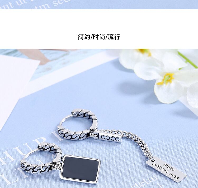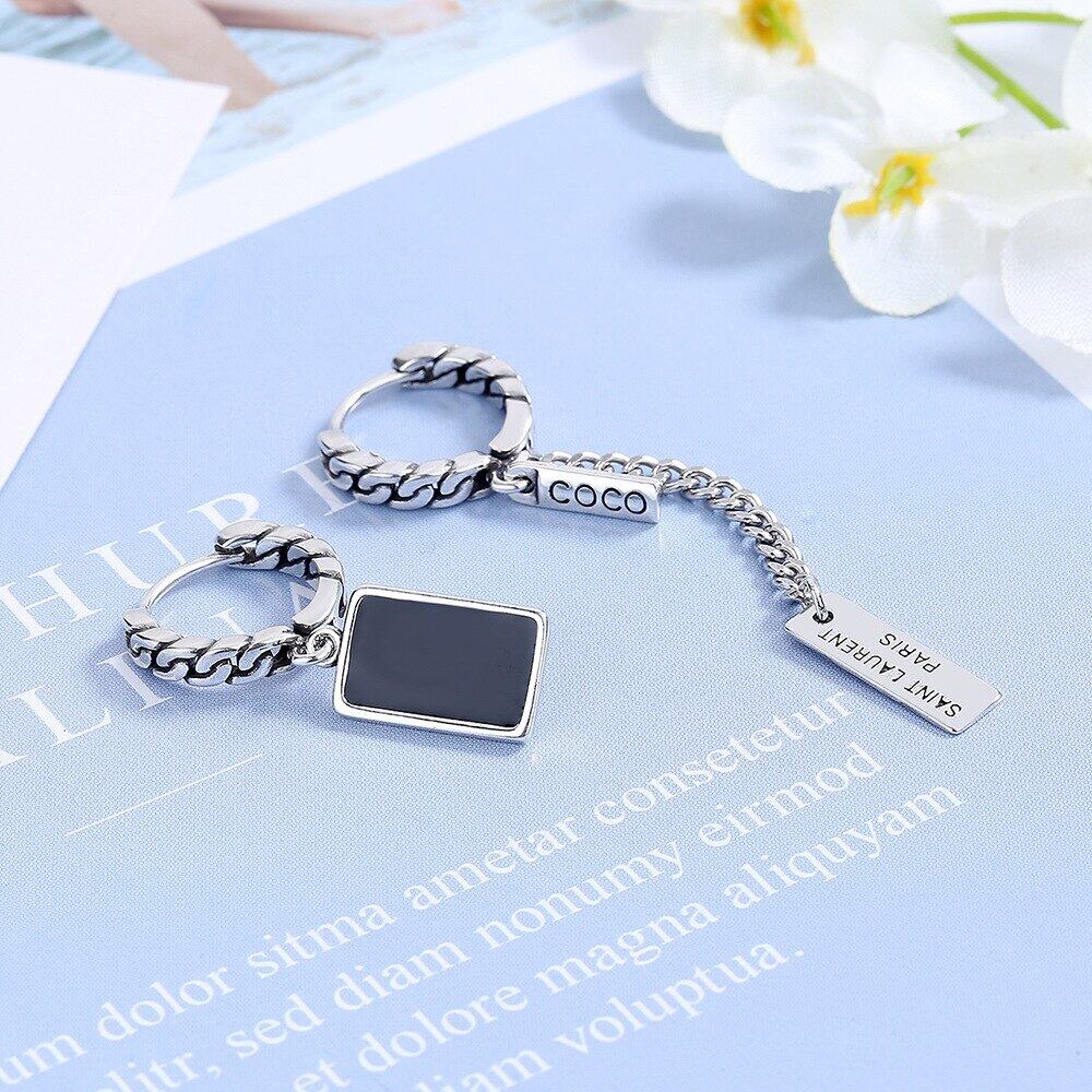 送料無料 タイ シルバー ドリップ グルー スクエア イヤー バックル レトロ ビンテージ パーソナライズ チェーン レター テル ロング イヤリング 指輪 銀 スクウェア AE00870048770903474