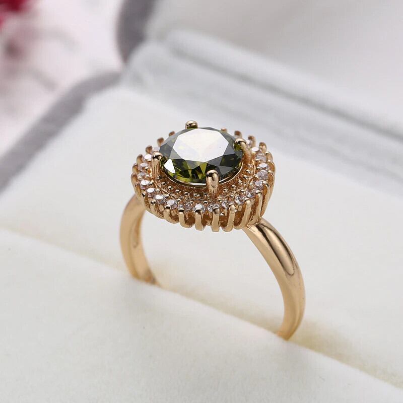 送料無料 絶妙なゴールドカラーの婚約指輪女性グリーンジルコンクリスタルリングアニバーサリーブライダルウェディングジュエリー AE00870019045341140