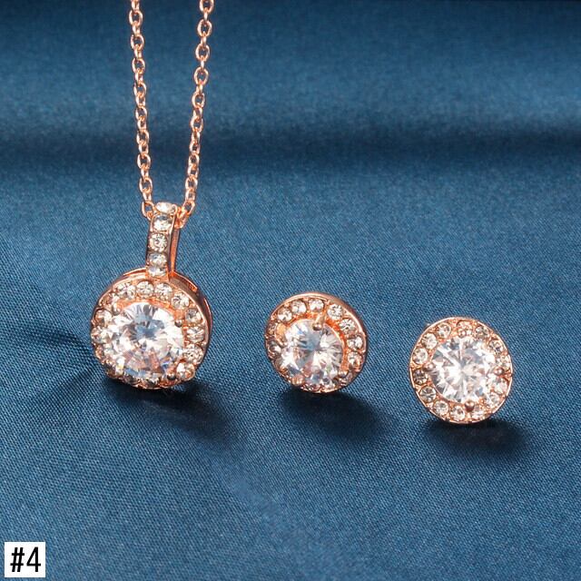 送料無料 ローズゴールドカラーラウンドクラウンジュエリーセットジルコンイヤリングとネックレスジュエリー レース 指輪 AE00870060426380694