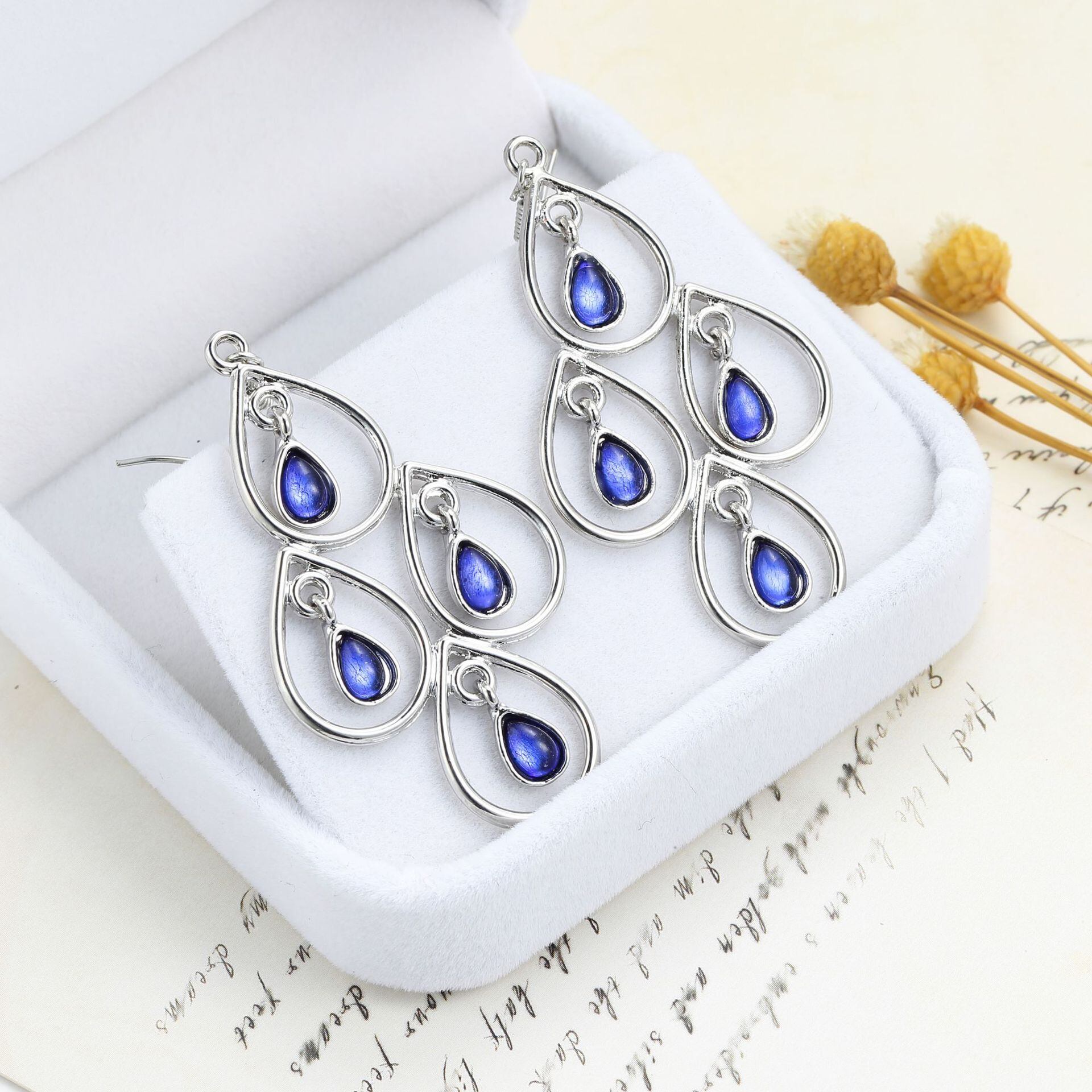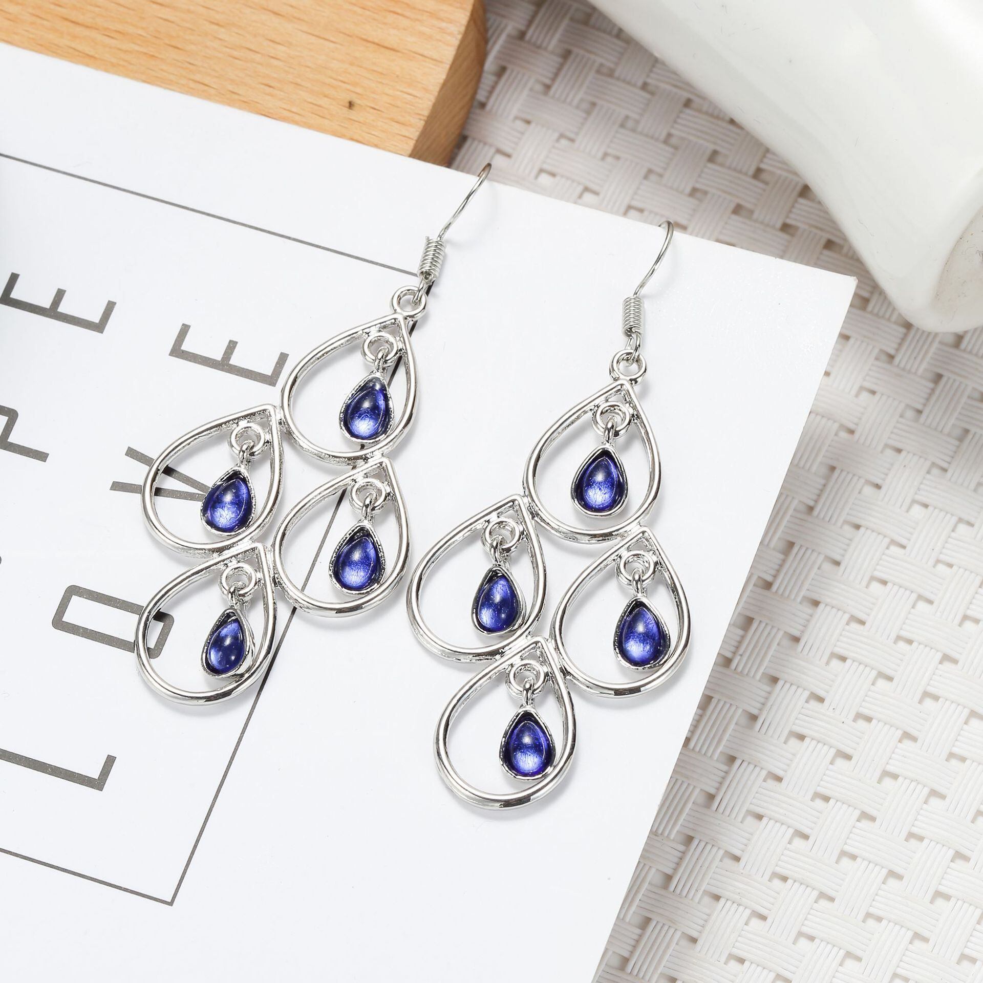 送料無料 シルバーカラー誇張された大型ロングイヤーフックブルーストーンブルージルコンイヤリングジュエリー 指輪 銀 AE0087004846853545