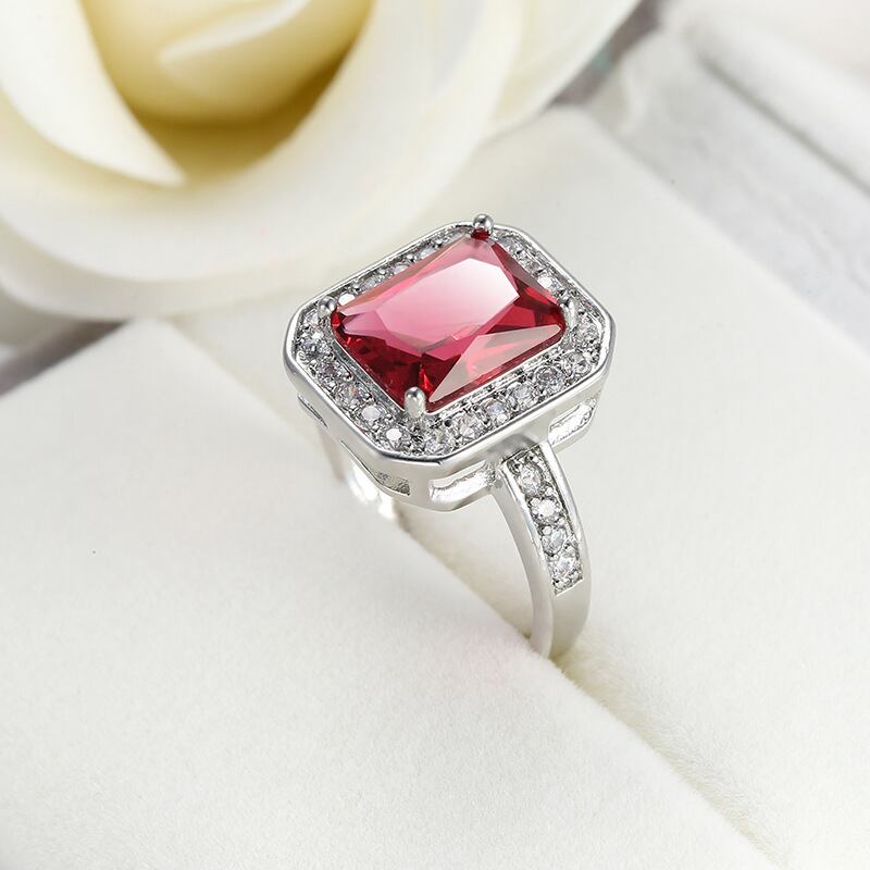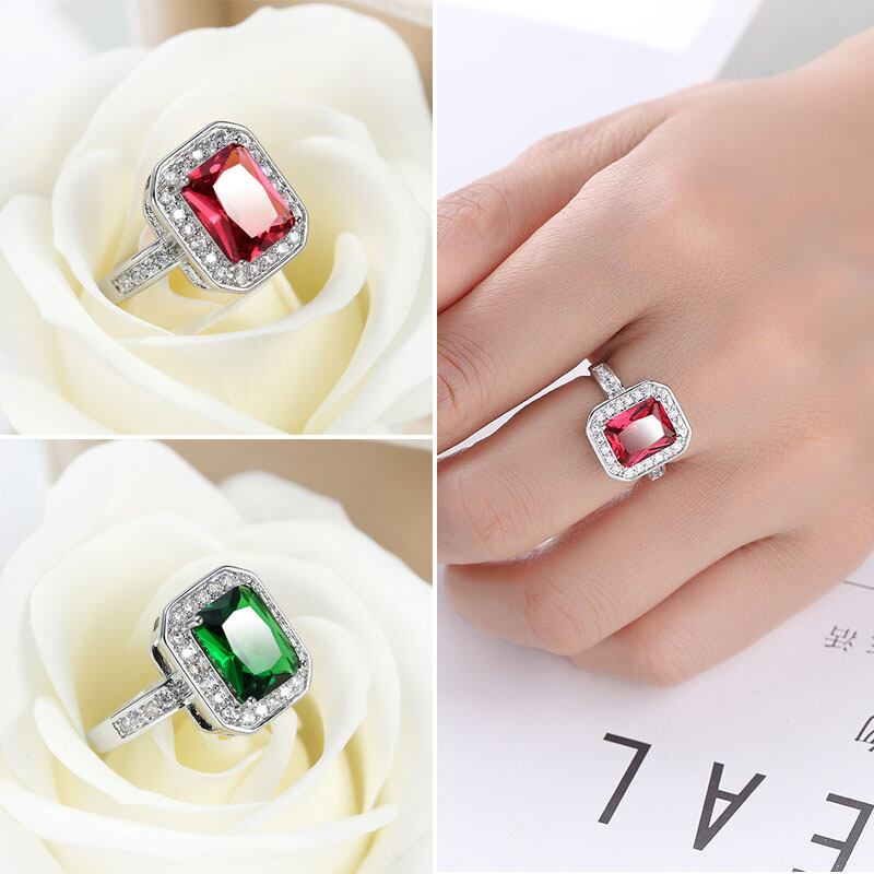 送料無料 エメラルドとレッドストーンクリスタルジルコンリング婚約ウェディングジュエリー作成リング花嫁の結婚指輪の女性のギフト 人工 翠玉 緑玉 AE00870095039841144