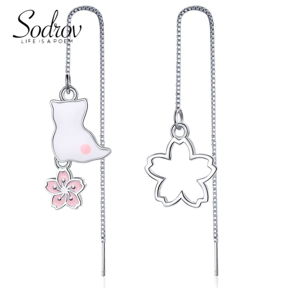 送料無料 Sodrov アシンメトリー イヤーライン 猫 フラワー ロングチェーン ピアス レディース イヤリング リング 指輪 フラワーデザイン AE00870098342502037