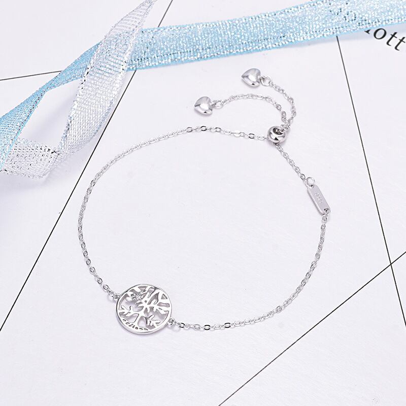 送料無料 925 シルバー レディース ラウンド ツリー オブ ライフ ブレスレット ジュエリー スターリングシルバー ジュエリー チェーン ブレスレット 銀 AE0087001683303932