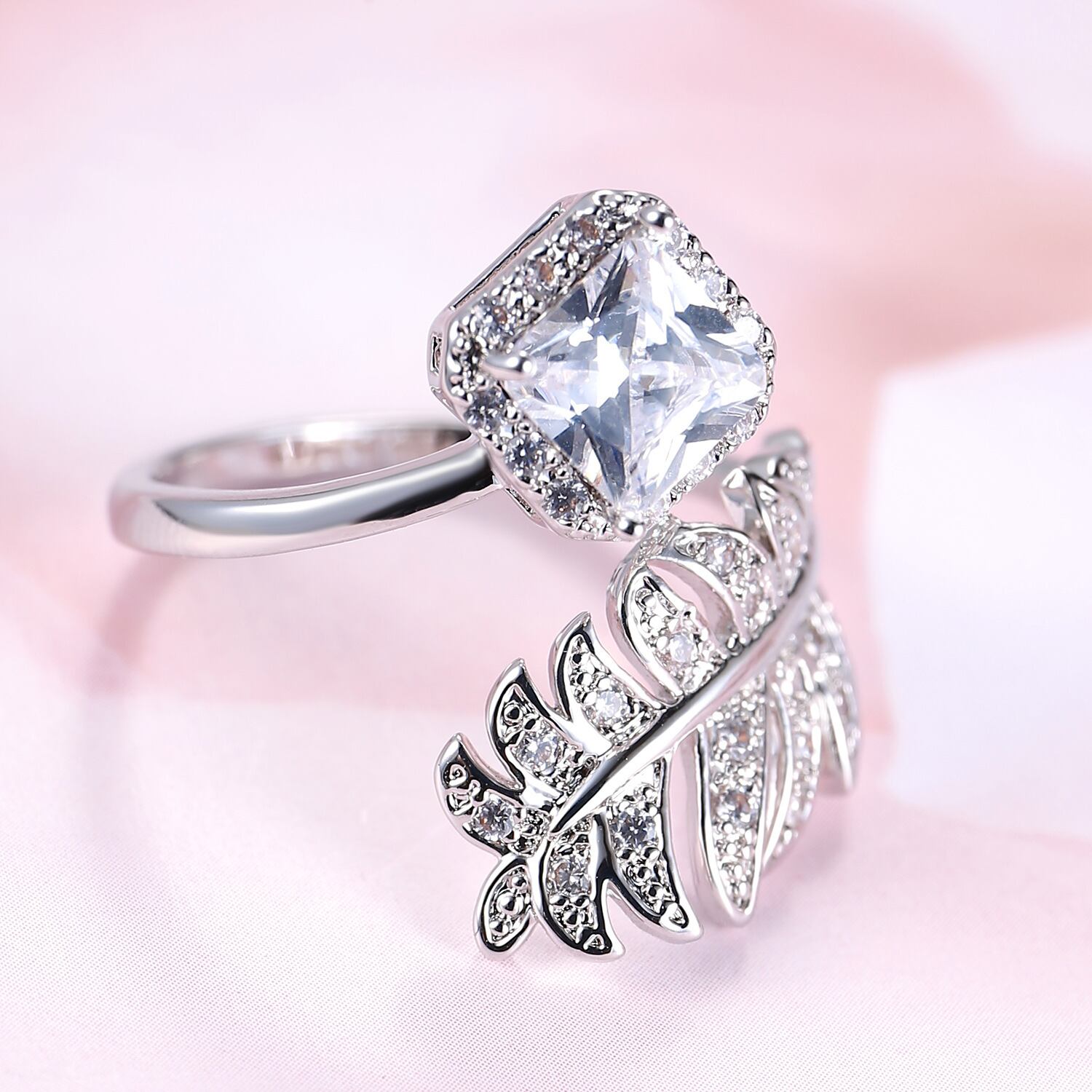 送料無料 ジルコン サイズ調節可能なリング パーティー ジョイント リング ジュエリー ギフトとシルバー色の葉の形のジュエリー アジャスタブル 指輪 銀 AE00870097075032733