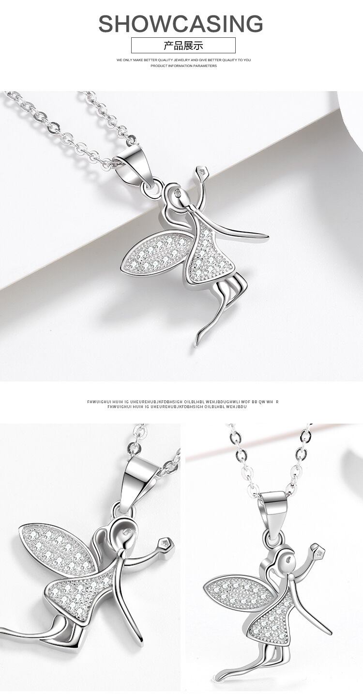 送料無料 S925 スターリングシルバー 絶妙なネックレス エリート エンジェル ペンダント ジュエリー レース 銀 AE00870062426614673