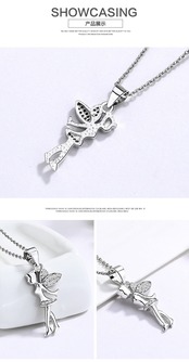 送料無料 スターリングシルバー 925 エンジェルペンダント ダンシングガールネックレス アクセサリー ジュエリーチェーンネックレス レディース レース 銀 AE00870052536022250