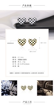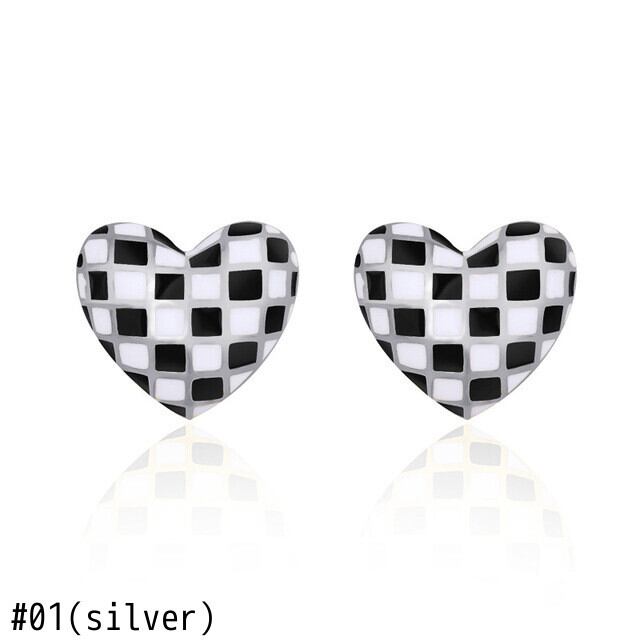 送料無料 SODROV 黒と白の市松模様のハートのイヤリングかわいいスタッドピアストレンディな 2023 ジュエリー女性 ホワイト ブラック 大人ガーリー スウィート キュート カジュアル 指輪 AE00870074663061878