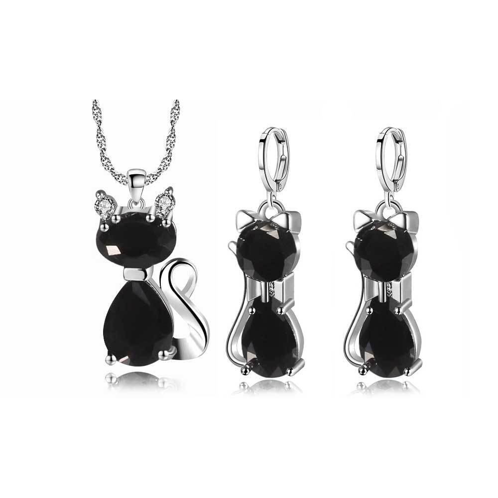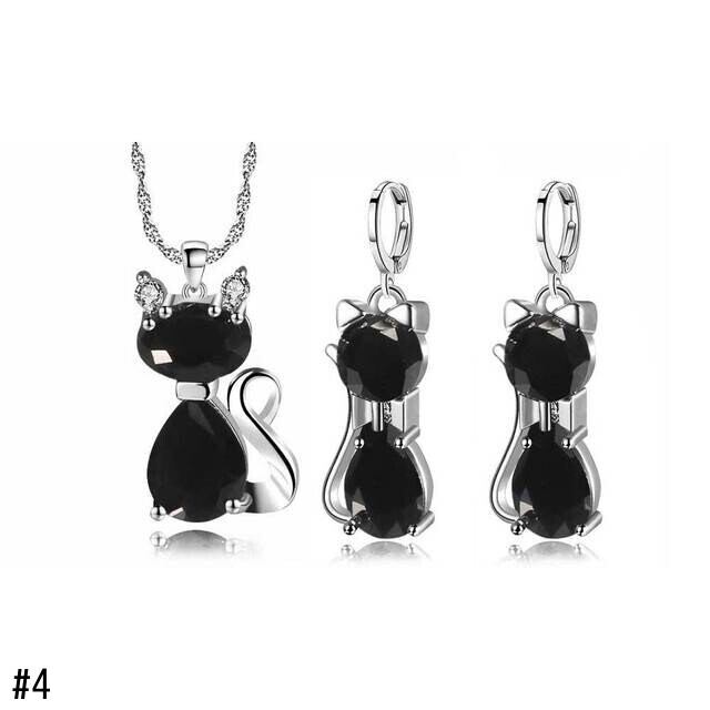 送料無料 かわいい猫のイヤリング ネックレス ツーピース ジュエリー セット シンプル ジルコン セット レース 大人ガーリー スウィート キュート カジュアル AE00870057786355481