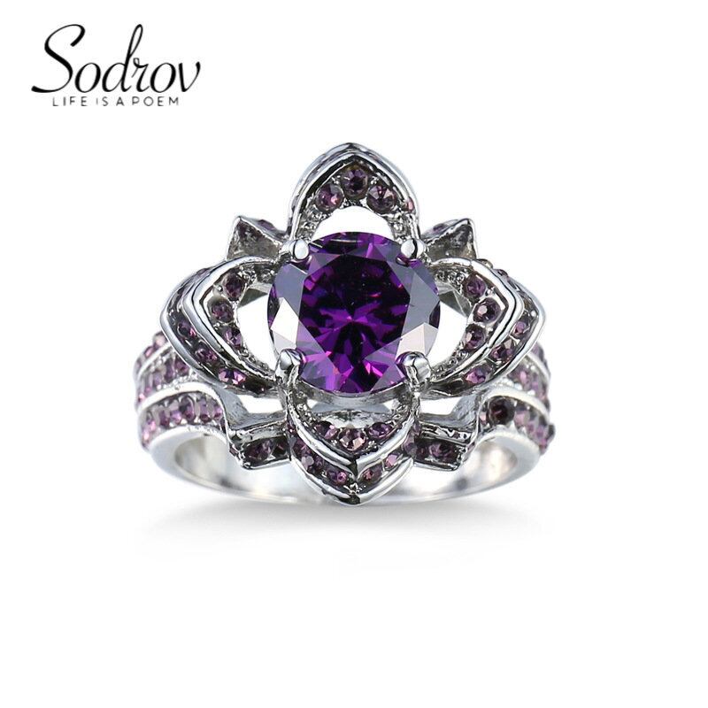 送料無料 SODROV ブラック ゴールド カラー パープル フラワー リング 女性 婚約 結婚式 デイリー ジュエリー ギフト 指輪 フラワーデザイン AE00870091780859213