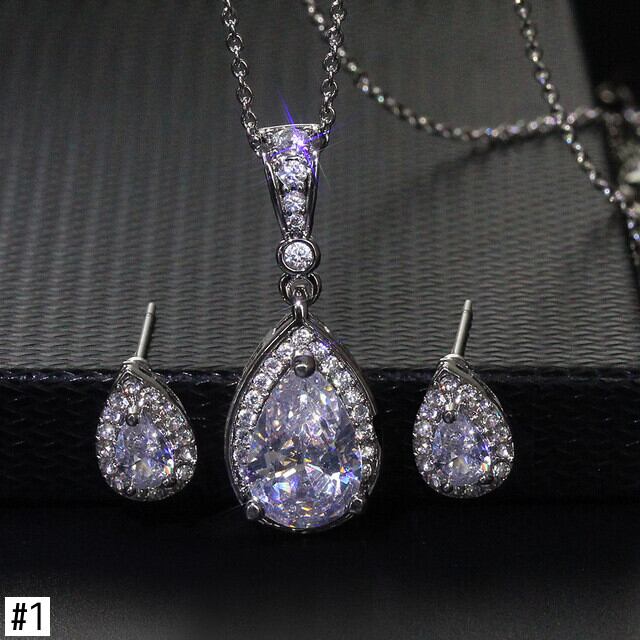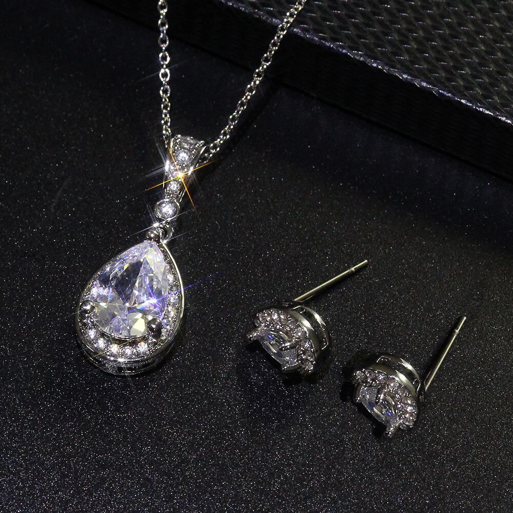 送料無料 輝くジルコンのウェディング ジュエリー セット ネックレスとスタッド イヤリングの女性 レース 指輪 AE00870062550635722