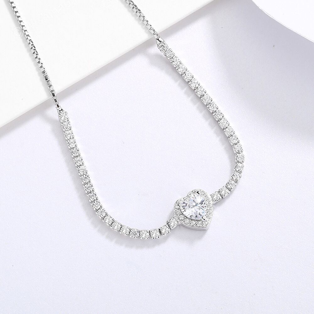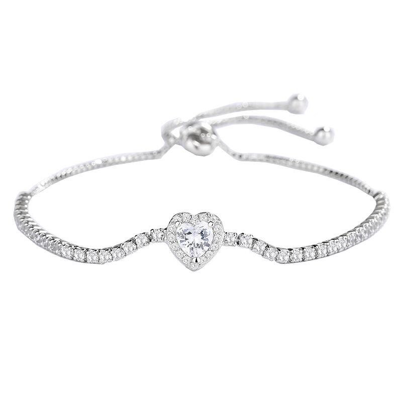 送料無料 S925 ジュエリー ブレスレット ハート ジルコン スターリングシルバー ウェディング エンゲージメント デイリー ブレスレット ギフト 女性 ガールフレンド 銀 AE0087008634900323