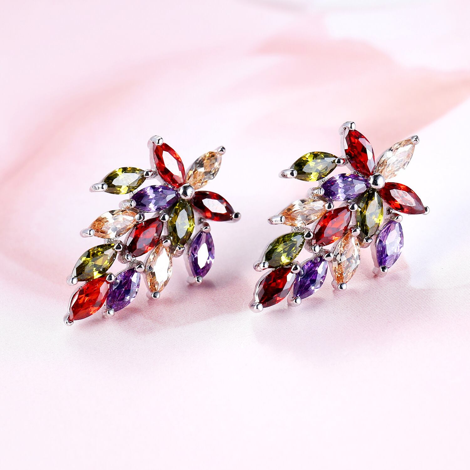 送料無料 SODROV 高級レインボージュエリー Coloful クリスタルジルコン混合色イヤリングジュエリー自由奔放に生きる葉のイヤリングの女性 指輪 AE00870084856603130
