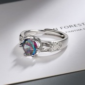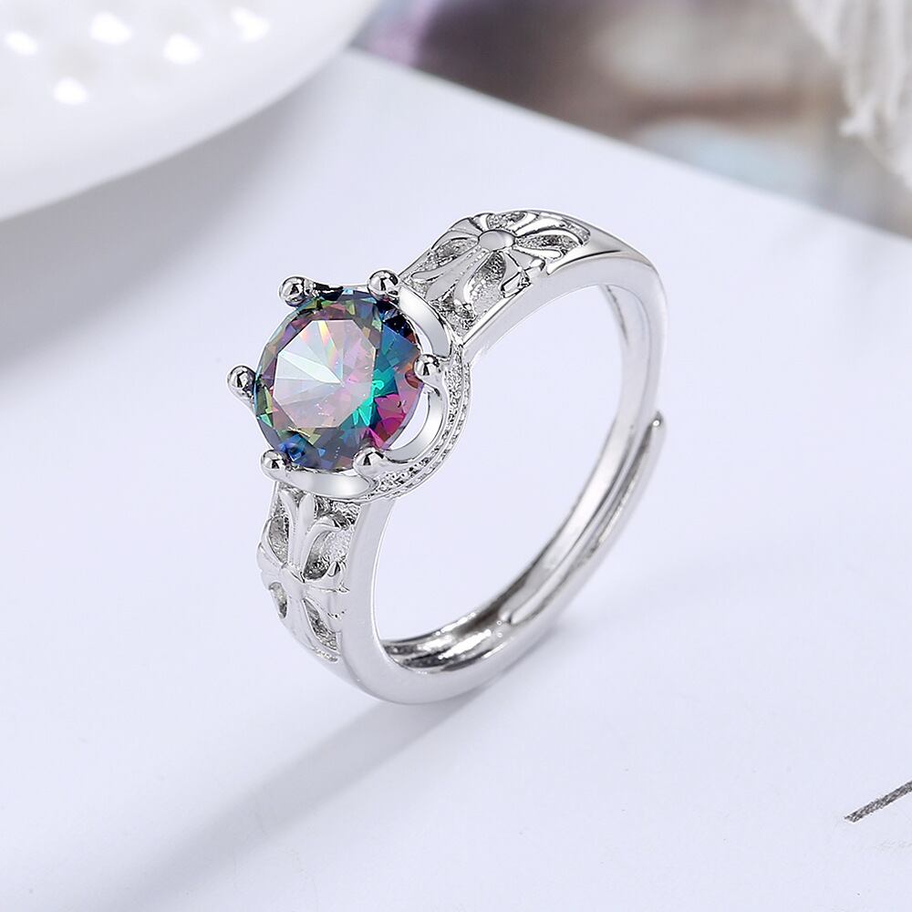 送料無料 ラウンドファンタジーカラフル合成ジルコニアオールドリング女性調節可能なハンドリング アジャスタブル 指輪 風信子石 AE00870069565451680