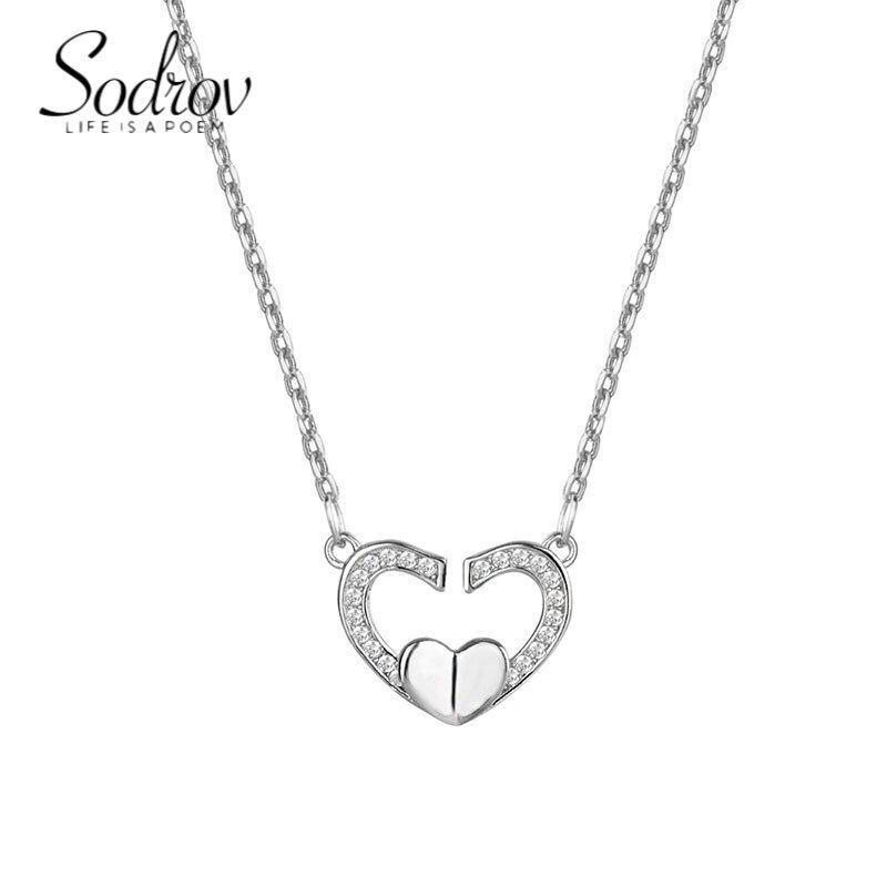 送料無料 SODROV S925 スターリングシルバーロマンチックジュエリーハートペンダントネックレス女性シルバーチェーンネックレス レース 銀 AE00870051323306191