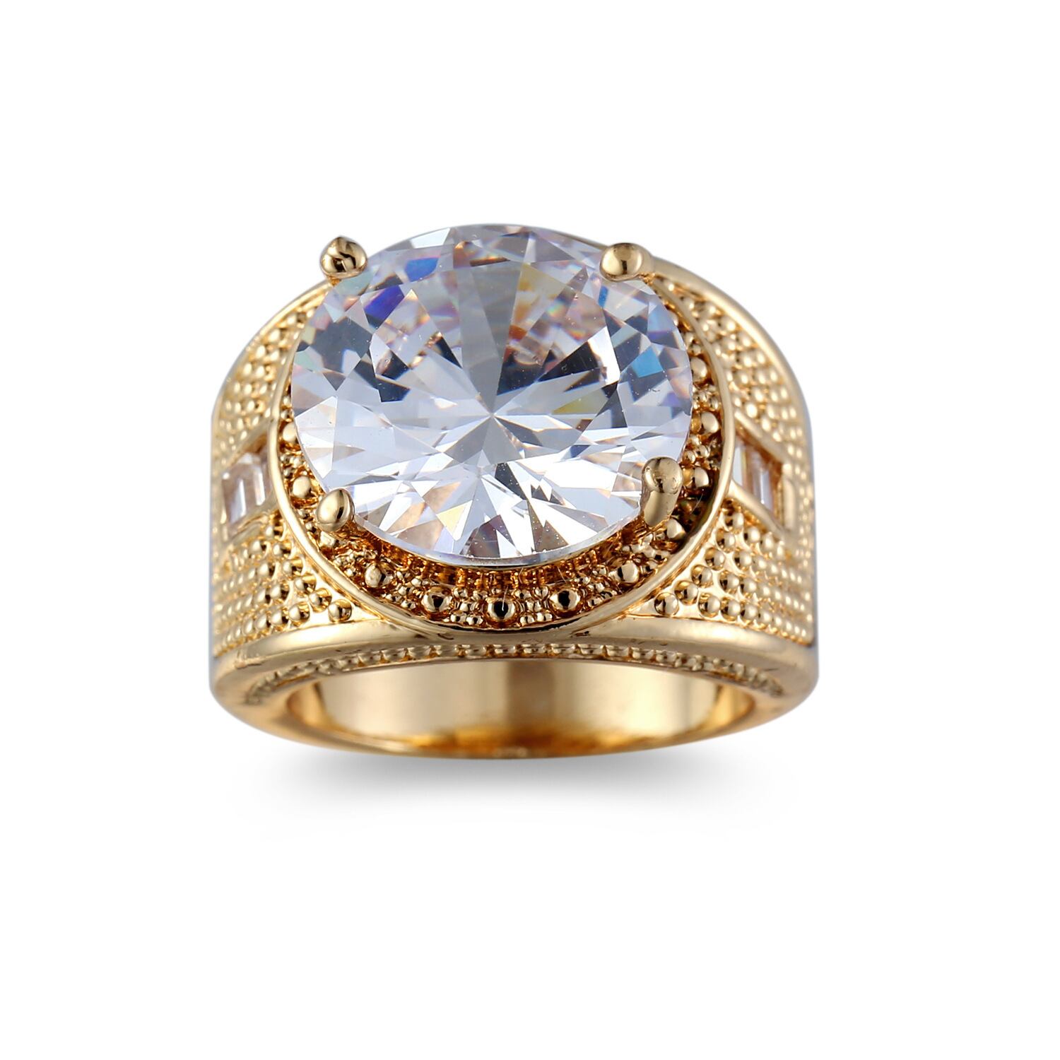 送料無料 ゴールドカラービッグホワイトクリスタルジルコンリング女性の婚約結婚式の毎日のジュエリー 指輪 AE00870056961794611