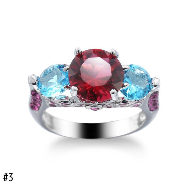 送料無料 ブルー ジルコン リング インレイ カラー クリスタル ジルコン ジュエリー レディース レッド 指輪 AE0087001020254137