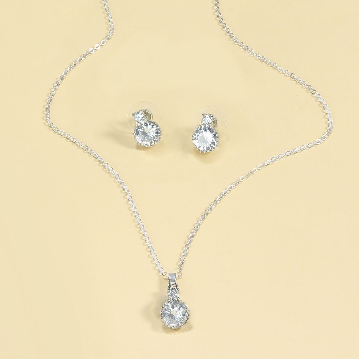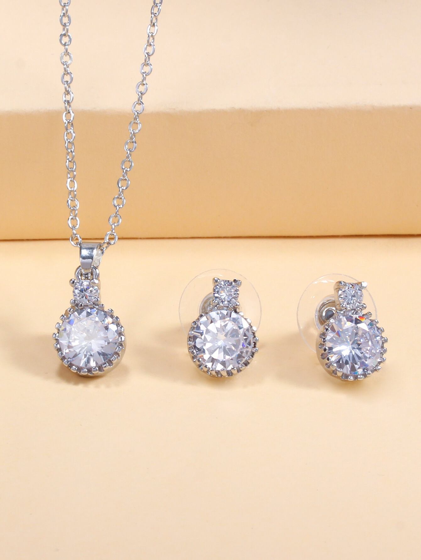 送料無料 ジュエリー ラウンド ジルコン ネックレス イヤリング セット レディース アクセサリー レディース セット ジュエリー イヤリング レース 指輪 AE00870046709975807