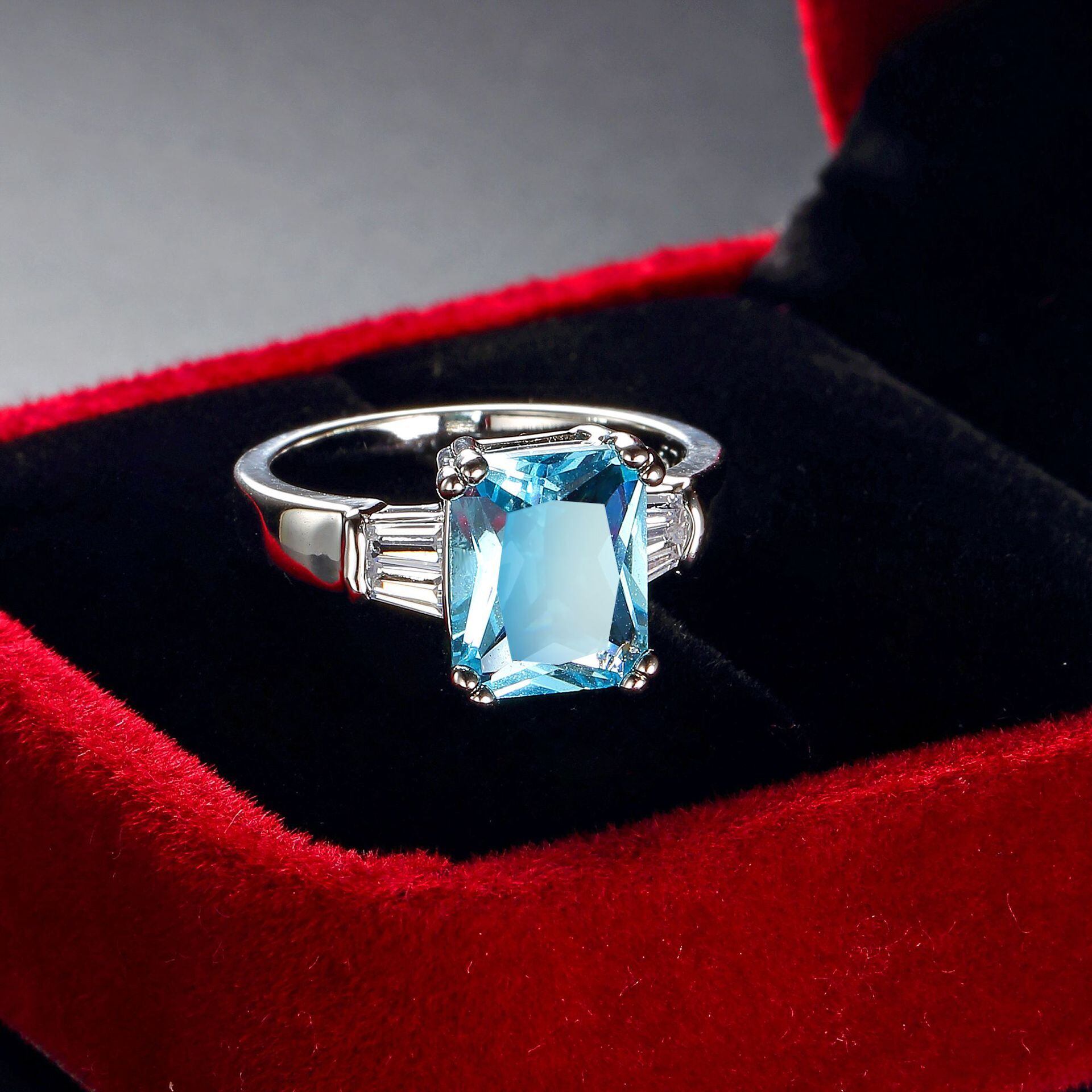 送料無料 シルバーカラーの婚約指輪女性シーブルージルコンクリスタルリングアニバーサリーブライダルウェディングジュエリー 銀 AE00870063802988181