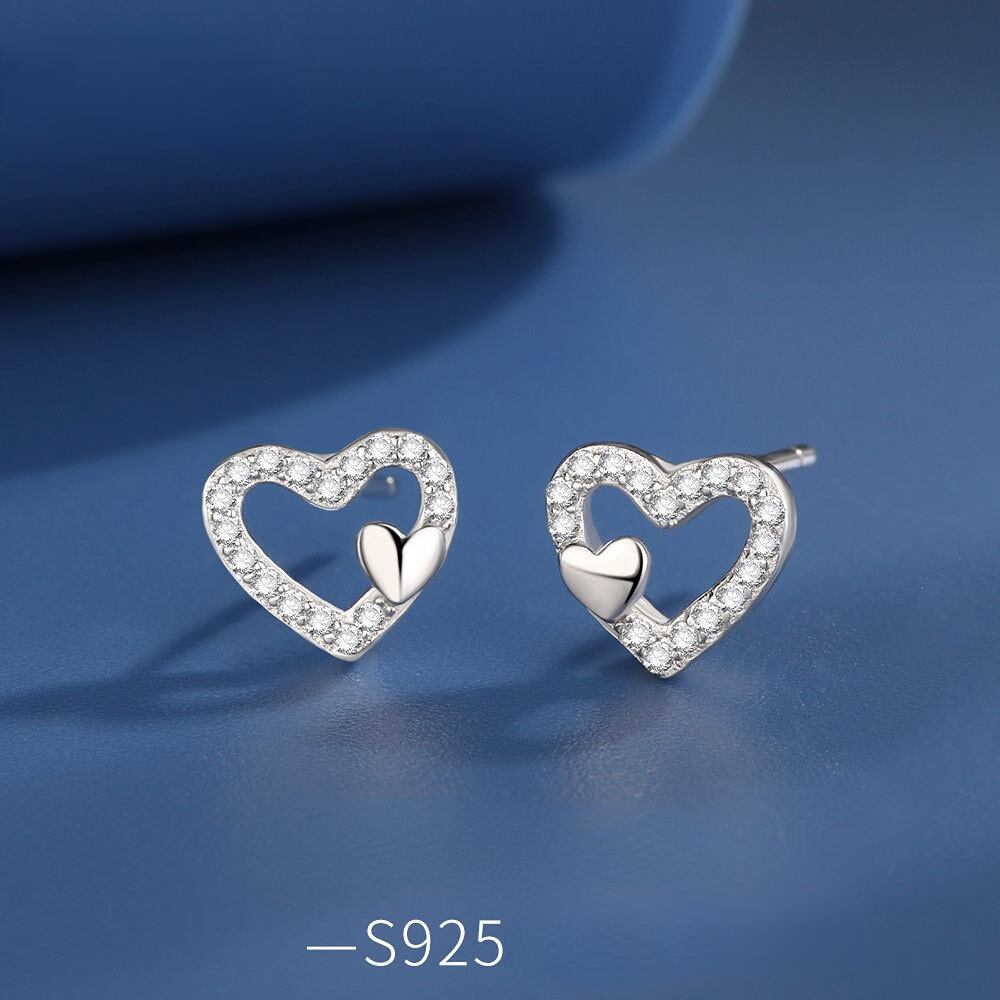 送料無料 クリック ハートシェイプ シルバー ジュエリー スターリングシルバー 925 スタッド イヤリング レディース 指輪 銀 AE00870048620483439