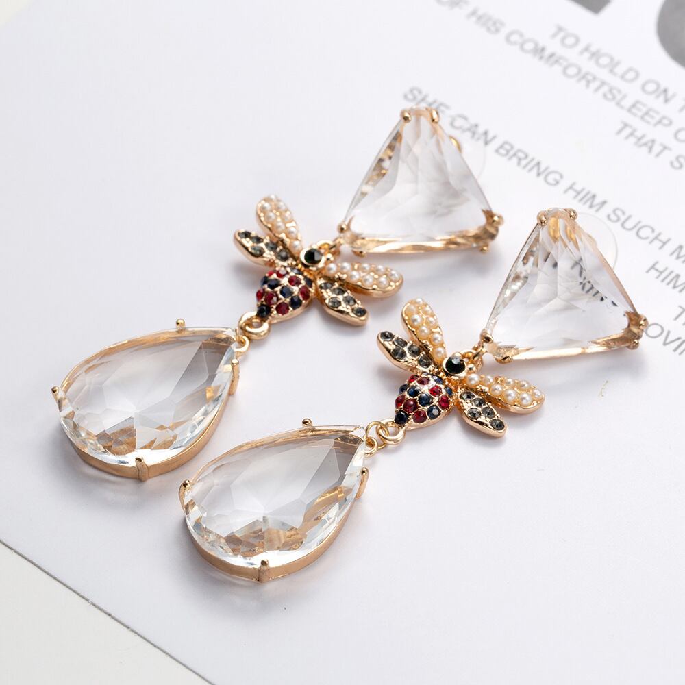 送料無料 SODROV リトルビー カラフル ジルコン パール イヤリング トレンド クリスタル ジルコン 誇張されたイヤリング レディース イヤリング 真珠 指輪 AE00870024752943050