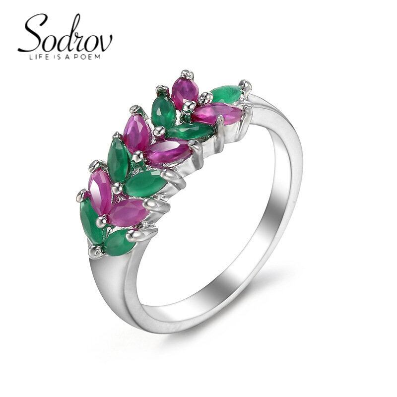 送料無料 SODROV クリエイティブ グリーン パープル ストーン ジュエリー リング 女性 結婚 婚約 ギフト 指輪 AE00870040359758511