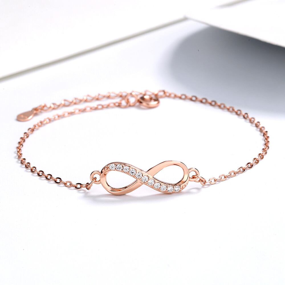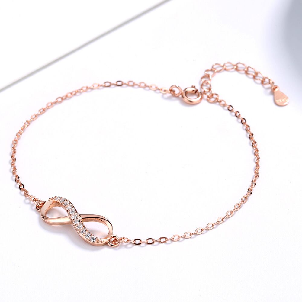 送料無料 スターリングシルバー925ローズゴールドメッキインフィニティチェーンブレスレット女性S925ジュエリーブレスレット 銀 AE00870074696613148
