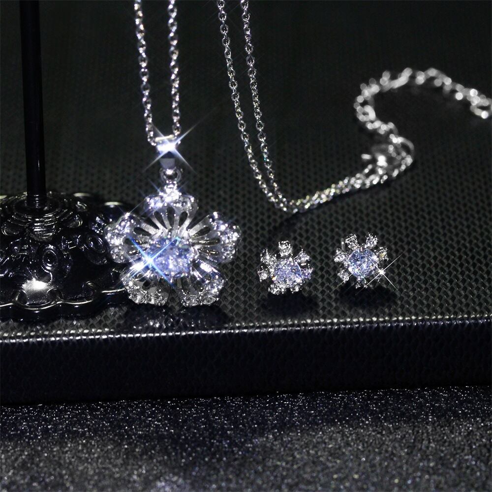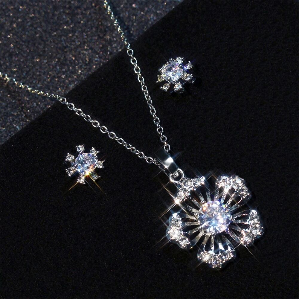 送料無料 ロマンティックペタルジュエリーセット 5枚の花びらの梅ジルコンピアスとネックレスセット レース イヤリング リング 指輪 AE00870035231186639