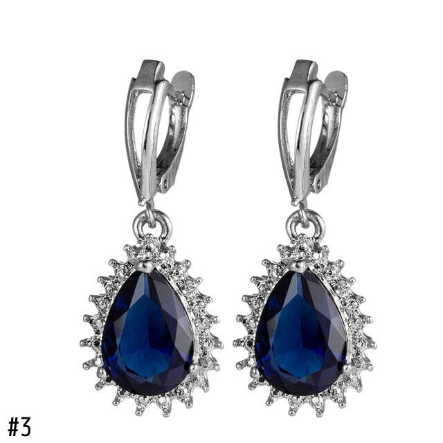 送料無料 シルバーカラーレッドブルーグリーンクリスタルジルコンイヤリング女性女の子クリスマスギフトステートメントジュエリー Pendientes 指輪 銀 AE00870052161837395