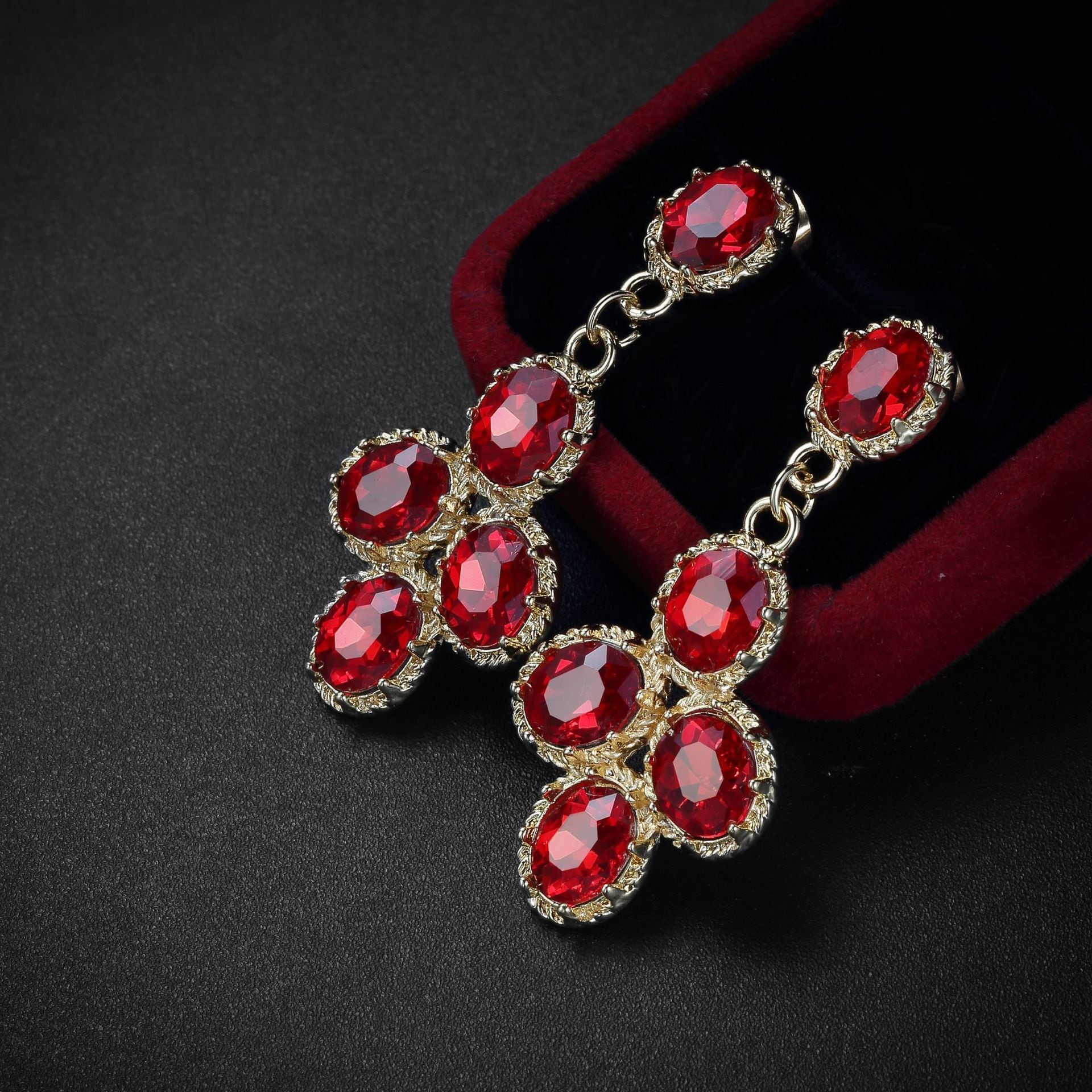 送料無料 SODROV 高級ジュエリーヴィンテージゴールデンレッドストーンイヤリング女性の結婚式婚約イヤリングギフト 指輪 ビンテージ AE0087002260768534