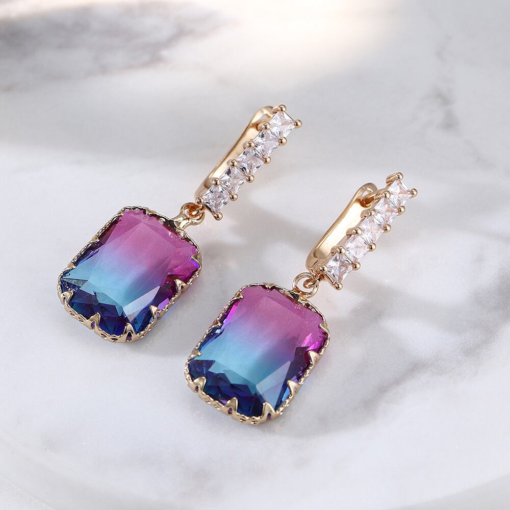 送料無料 トルマリン ブリリアント パープル スクエア クリスタル ジルコン イヤリング レディース 指輪 スクウェア AE00870037200997664