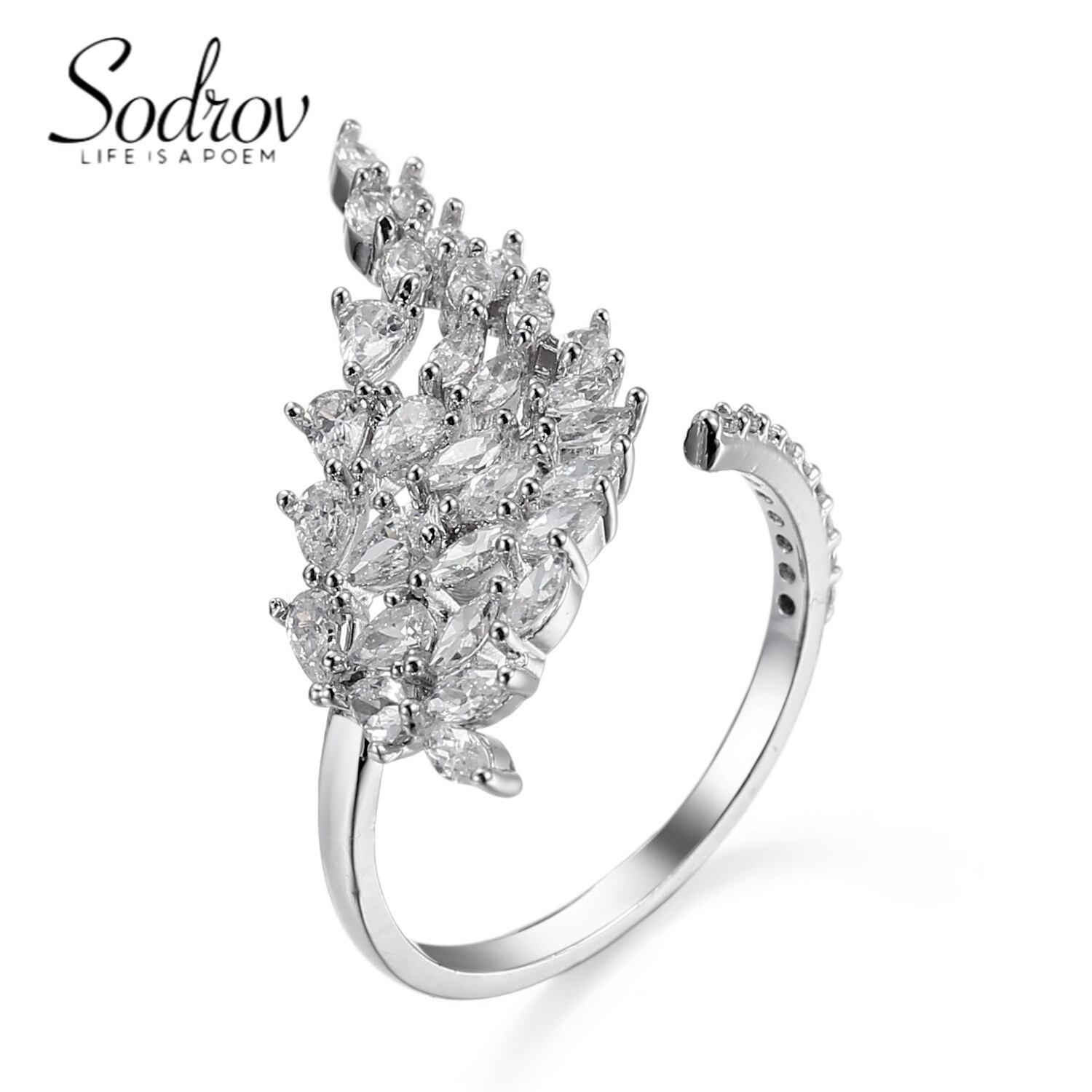 送料無料 SODROV 高級ジュエリーホワイトマーキスジルコンリーフリング女性婚約ジュエリーギフトオープンリング 指輪 AE00870081990703352
