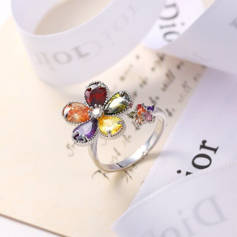 送料無料 SODROV レインボー クリスタル ジュエリー カラフルなジルコンの花リング女性オープン リング ウェディング ギフト 指輪 フラワーデザイン AE00870056813107443